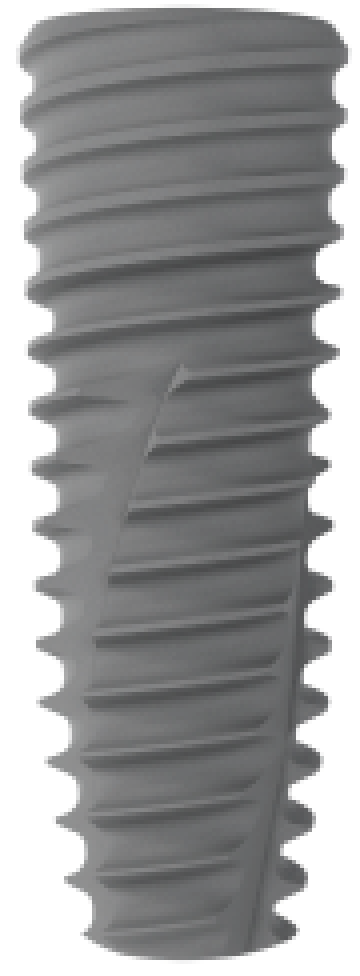 斜面仅酸蚀(Ra0.3-0.5um),体部 SLA(Ra 1-4um),以差异化表面处理实现更优的骨结合与稳定性